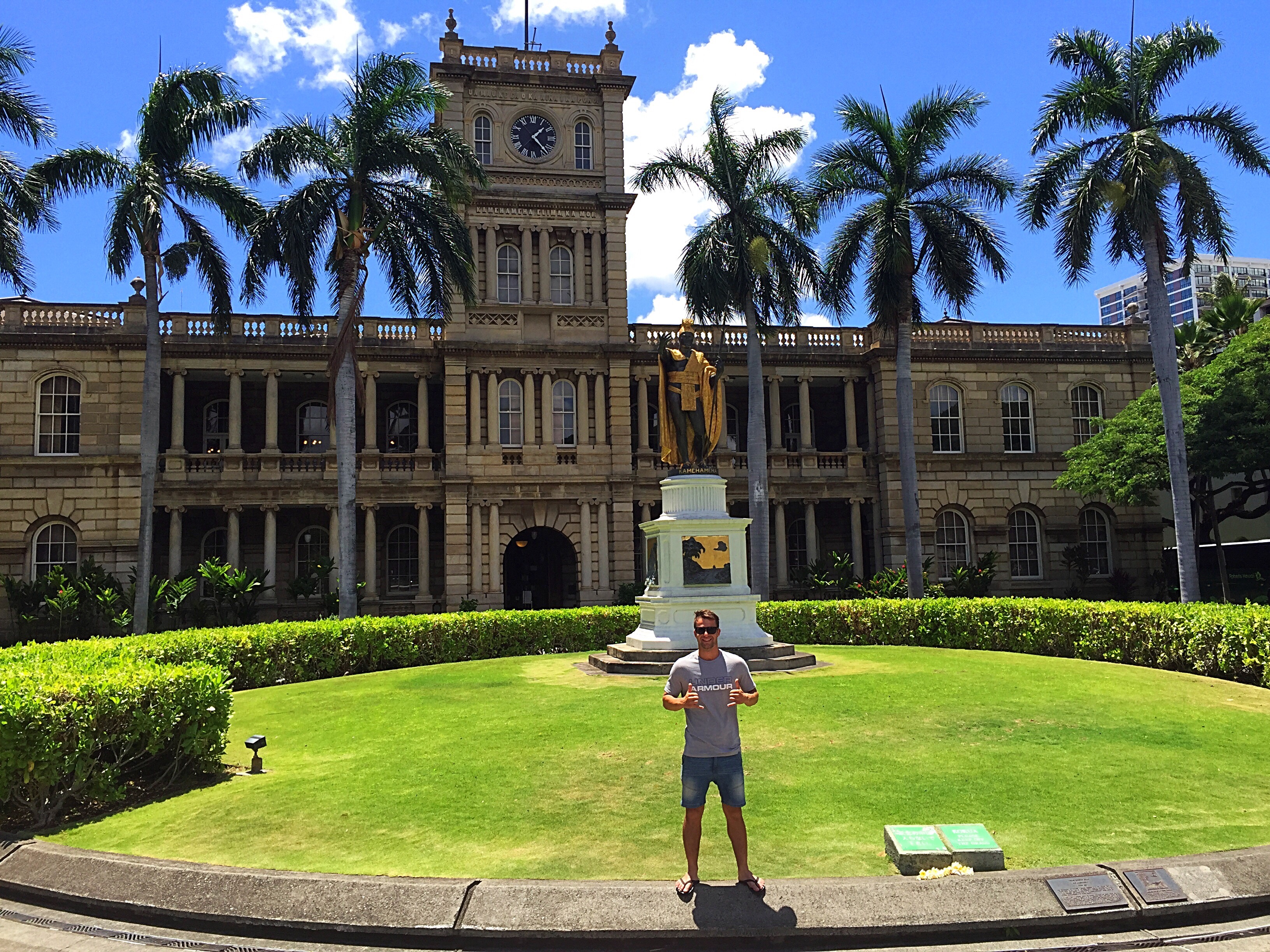 Located in the building’s courtyard is the famed gold-leaf statue of Kamehameha the Great.
