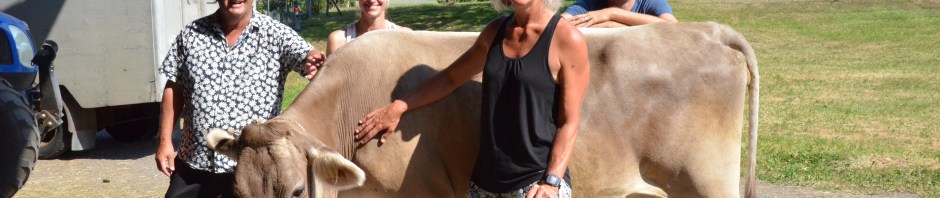 Karin and Elvis has then arranged for us to visit a Swiss Farm owned by friends of theirs – Sandra and Sep. They milk 30 cows and every cow has a name and is known by that name. The cows are currently spending their days in the barn with a big fan going because it is so hot – they go out into the pastures at night when it is cooler.