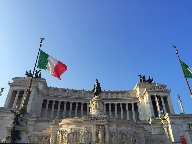 We saw the Altare della Patria ([alˈtaːre della ˈpaːtrja]; English: “Altar of the Fatherland”), also known as the Monumento Nazionale a Vittorio Emanuele II (“National Monument to Victor Emmanuel II”) or Il Vittoriano from the road, which is a monument built in honor of Victor Emmanuel, the first king of a unified Italy.