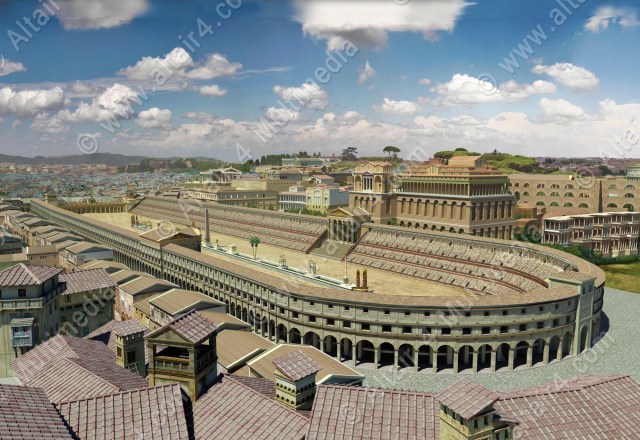 First stop was the Circus Maximus. The Circus Maximus (Latin for greatest or largest circus; Italian: Circo Massimo) is an ancient Roman chariot-racing stadium and mass entertainment venue. Situated in the valley between the Aventine and Palatine Hills, it was the first and largest stadium in ancient Rome and its later Empire. It measured 621 m (2,037 ft) in length and 118 m (387 ft) in width and could accommodate over 150,000 spectators. In its fully developed form, it became the model for circuses throughout the Roman Empire.