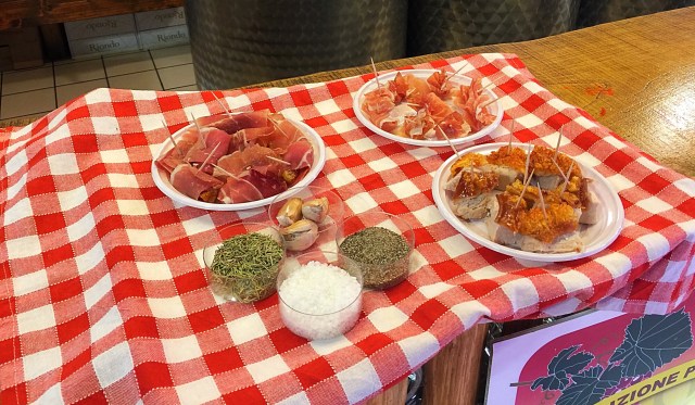 We also tried some pork products at the market. Italy has been the worldwide pioneer in the techniques of curing meats since ancient Roman times. Curing is the age-old process of preserving fresh meat through salting, smoking and air-drying Italian Meats. Pork is the most common cured meat in Italy, although other meats such as beef, venison and wild boar are also cured. Each region of Italy is known for its own cured meats, known as salumi, based on local customs. Spice plays an important role in the curing of Italian Meats. Typically, Italian Meats from the south tend to be spicier than those from northern Italy.