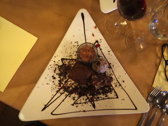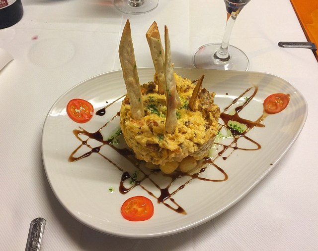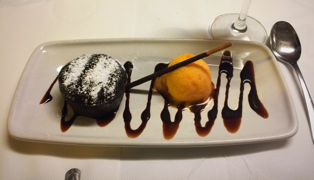 The pastry we enjoyed was a cannolo which is a Sicilian specialty – made from flour, cocoa powder and water – they are deep fried and rolled into a tube like a cannelloni. They are then filled with ricotta cheese and dipped in a topping like pistachios, almonds, hazelnuts, cherries etc… I had candied orange – not bad although I’d take porridge any day of the week.